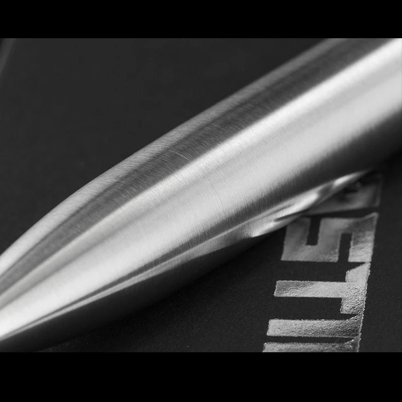 The body is CNC machined from a solid piece of stainless steel with a sleek and seamless appearance. The tip unscrews to replace the refill but the join is barely perceivable such is the quality of manufacture.