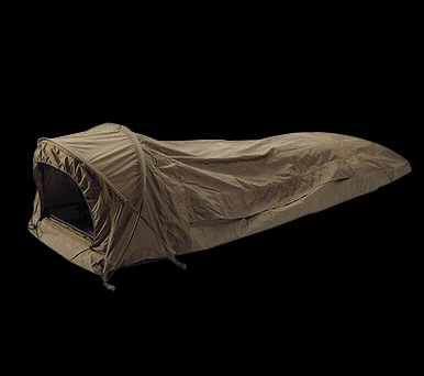 Oberserver Plus: The perfect bivy bag with self-standing double pole support. 2 tent poles form a small dome at the head end which provides enough space for the user to handle a rifle or other piece of equipment. The bivy bag slopes down from the shoulder to the foot end thus preventing straight lines which are easily spotted.