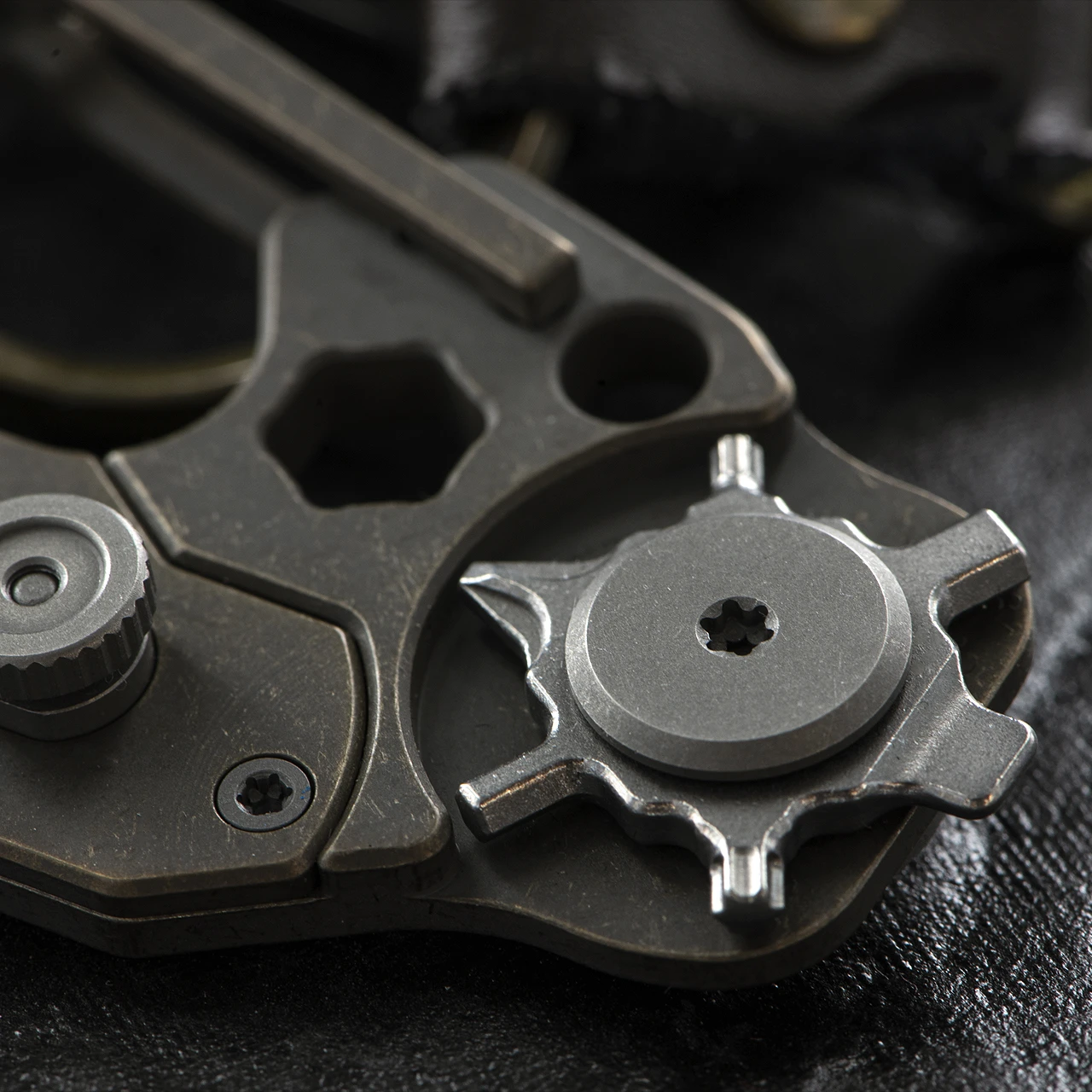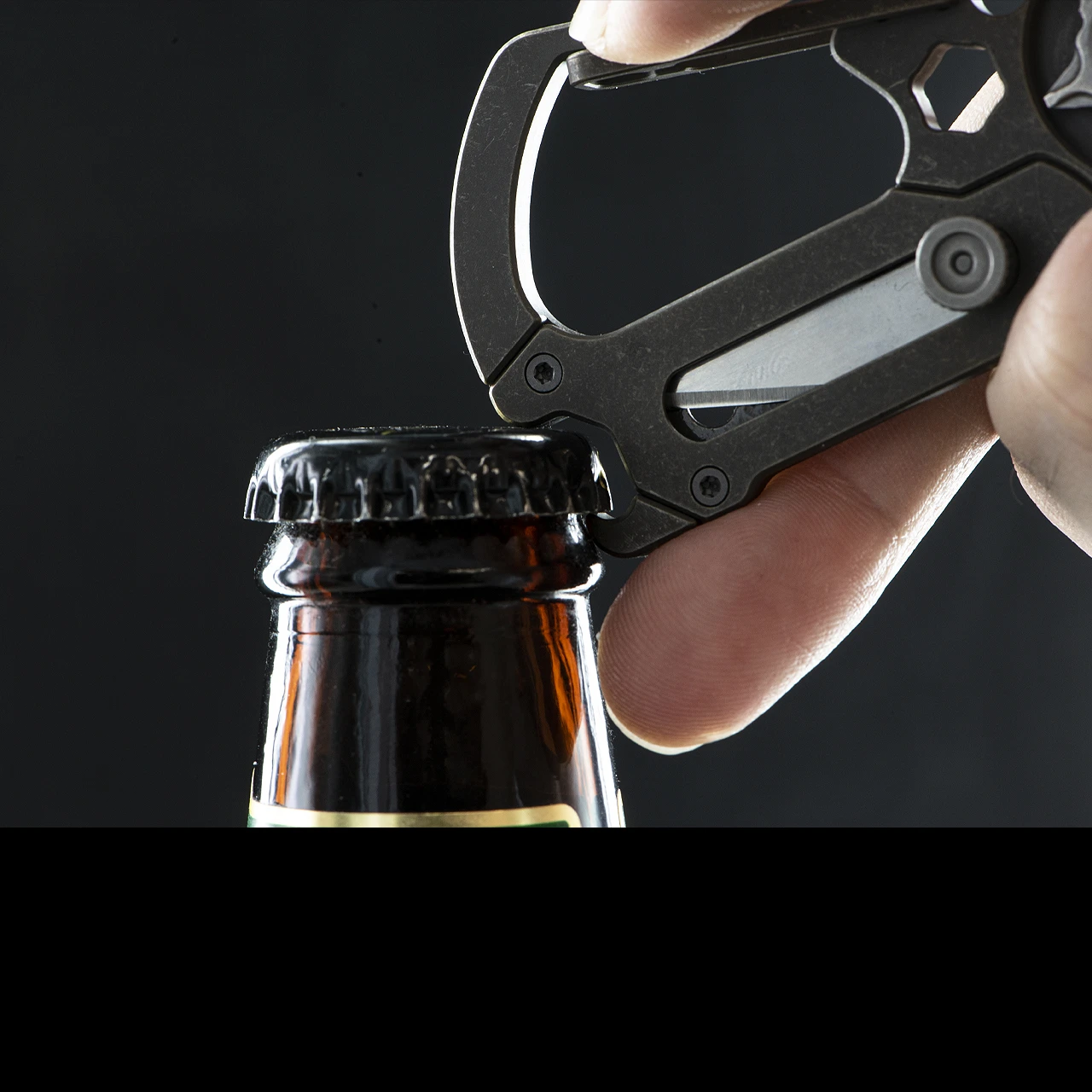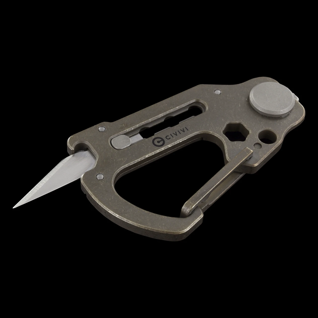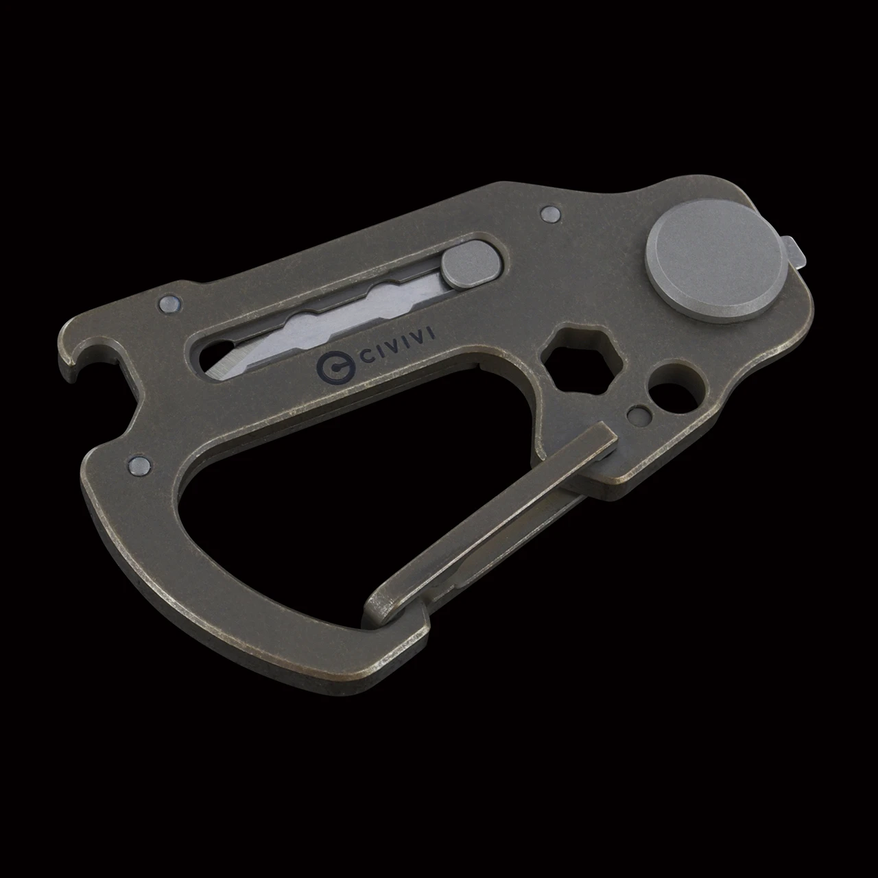 The Civivi Polymorph is a bottle opener and hex bit driver with a 9Cr18MoV scalpel blade attached all encased in an anodised titanium body. The spring loaded carabiner feature means you can hang it from anything so it’s always close to hand when you need it.