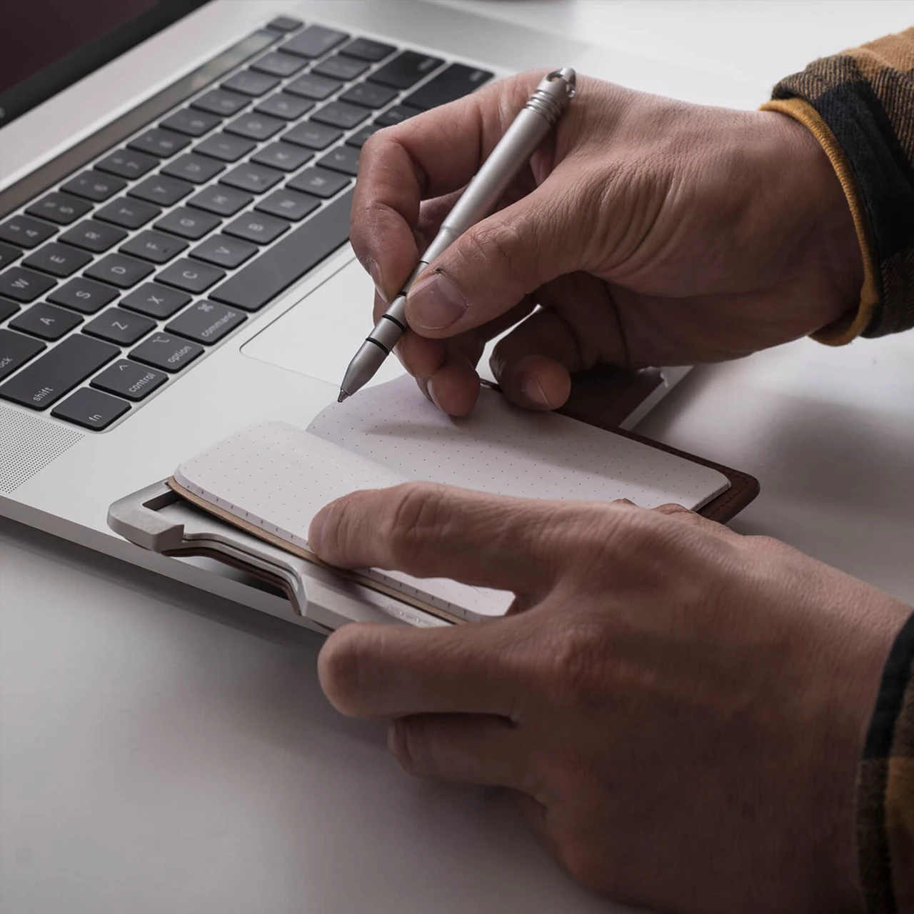 The Dango D01 Dapper Pen Wallet comes equipped with a high capacity four pocket bifold exterior (holds up to four cards per pocket) with one pocket dedicated for a pen. The anodized aluminium chassis and the pockets are held together by mil-spec stainless steel bolts. The D01 Pen Wallet retains a slim & sleek profile while holding its maximum capacity. The Dapper Pen Wallet is elegant and sophisticated but has an industrial edge which sets it apart from other slim wallet designs. Never be without a pen & pad, as ideas and information can get swept away real quick.