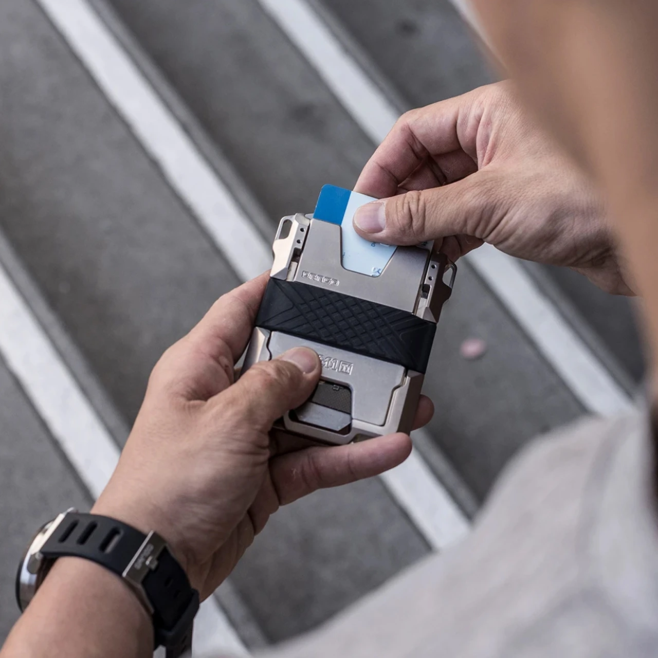 - Genuine leather – Silicone wallet band – Titanium frame
