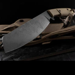 Kreios Expeditions has a desert forprene handle and a BÖHLER N690 (58HRC) blade steel with MIL-C-13924 burnishing and a superficial stone washed finishing (DARK STONE finishing).