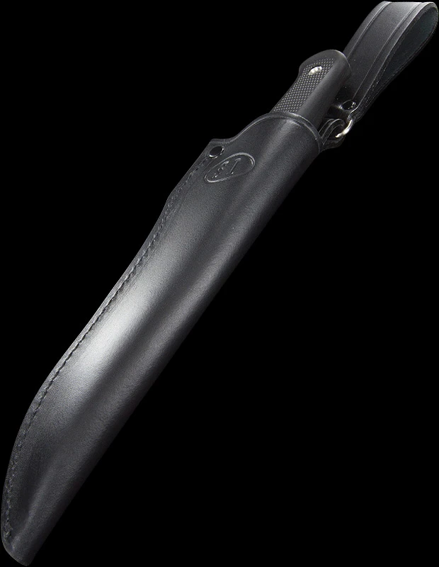 The sheath is manufactured in black ox hide and is of the open, hinged type – most favoured by hunters and anglers in northern Scandinavia. The sheath is deep enough to hold the knife in place without extra fasteners. The sheath has a plastic liner to prevent the knife from cutting through the end. There is a Zytel sheath for those requiring a completely weatherproof solution