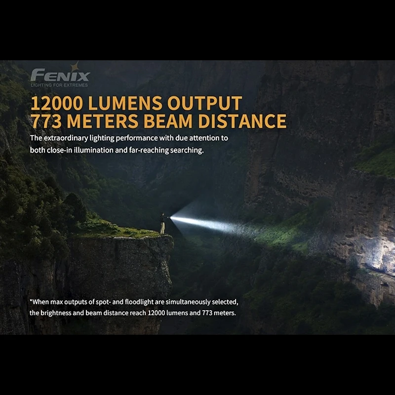 - Combined beam: 12,000 lumens max with a beam range of 773 meters