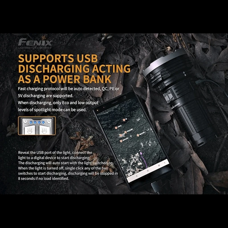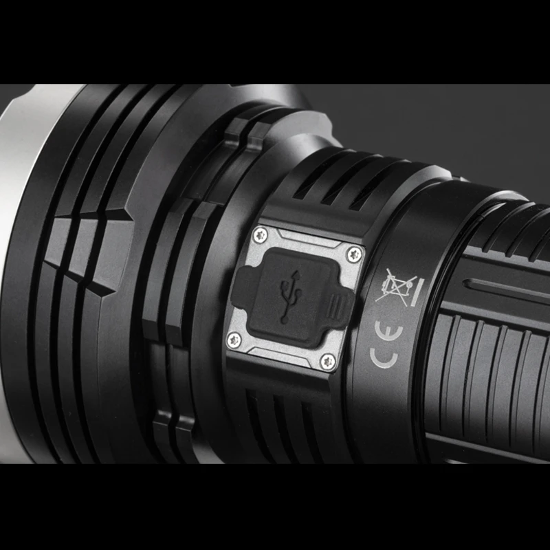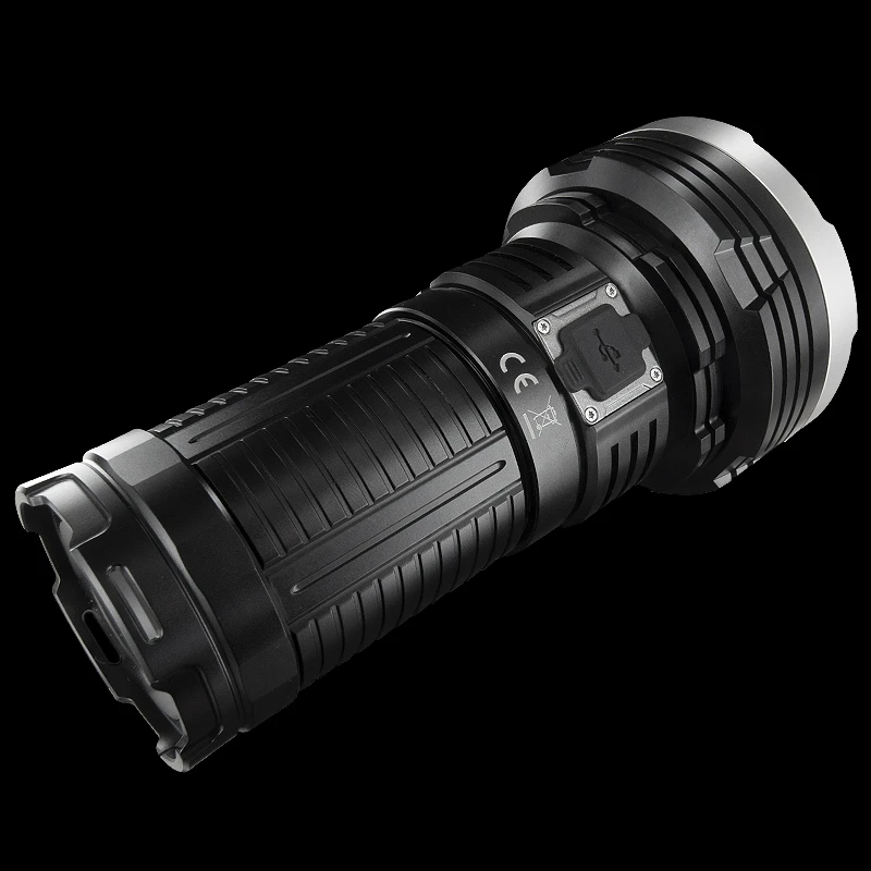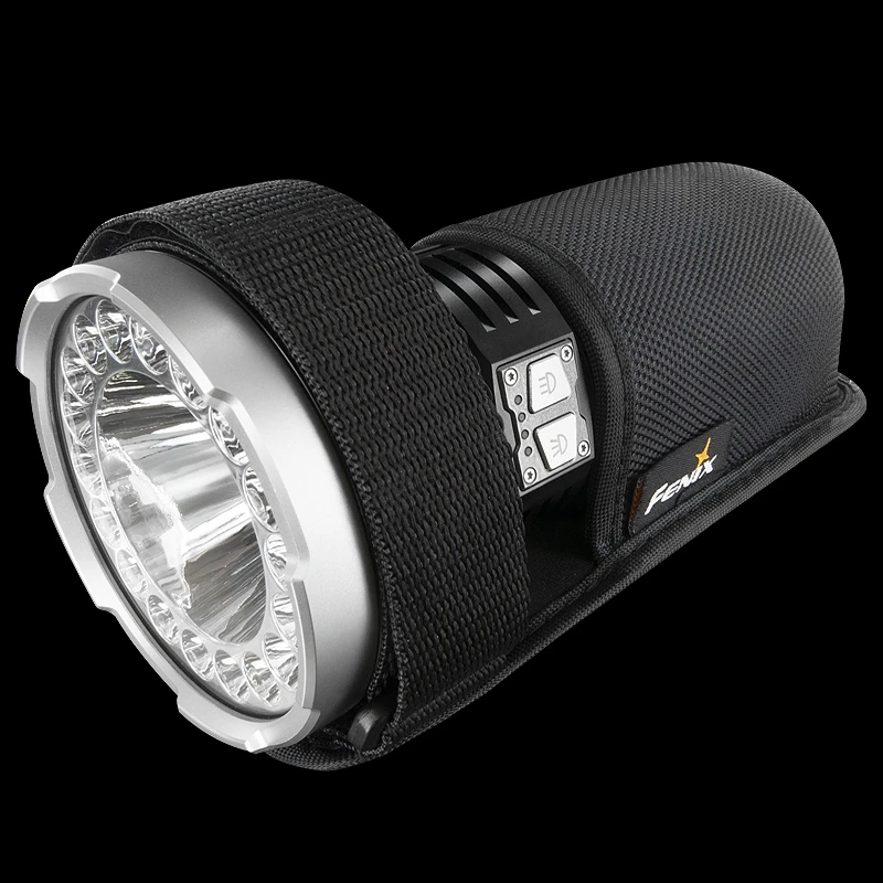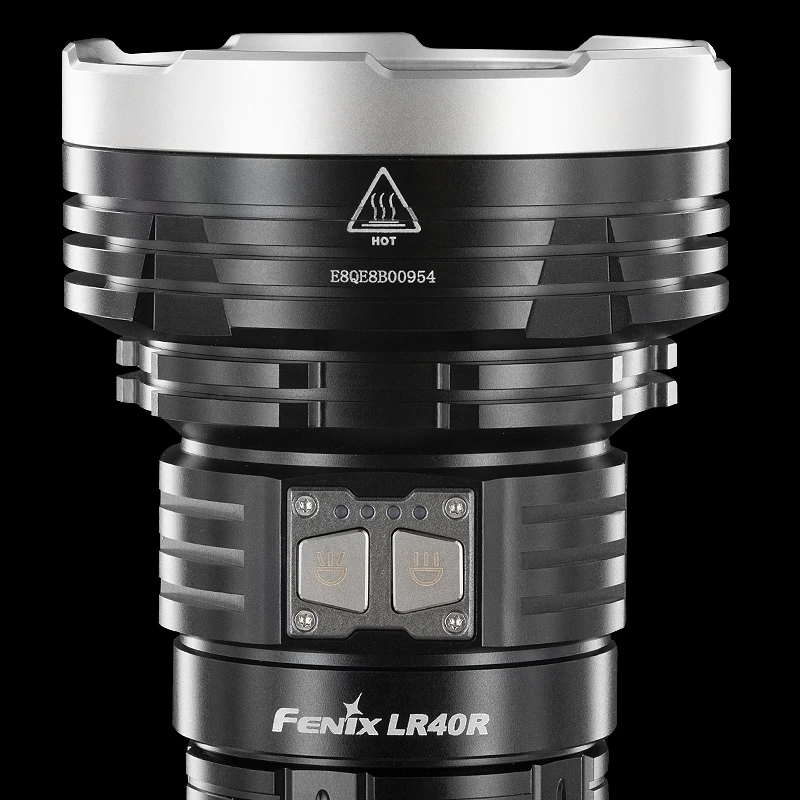 The Fenix LR40R is a high output ultra compact rechargeable LED searchlight which is powered by the included Fenix 12,000 mAh Li-ion battery pack or 1 to 4 x 18650 batteries. With 12,000 lumens maximum output this is one serious lighting tool in a small form factor at only 154mm long x 80mm head diameter. The Fenix LR40R is a great LED torch choice for Search and Rescue Teams and Outdoor Contractors with its small size, long run times in long range spotlight mode and durable waterproof construction.