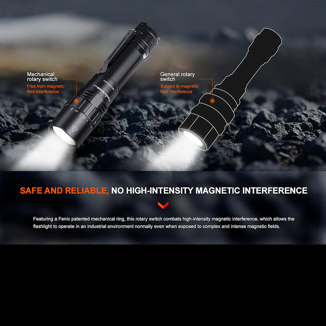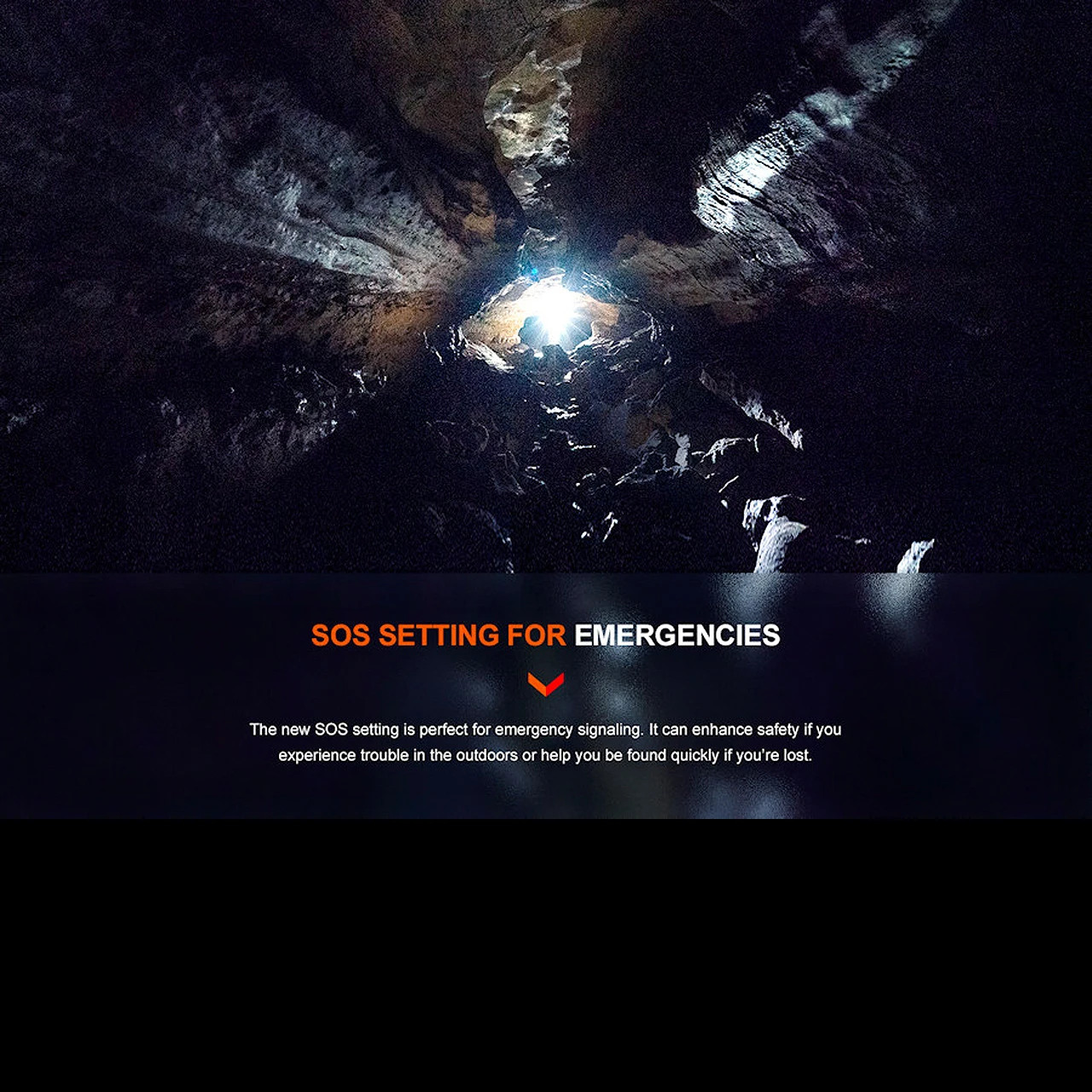 The Fenix flashlight offers four brightness levels, ranging from 30 to 3000 lumens, plus a 2500 lumen strobe mode.