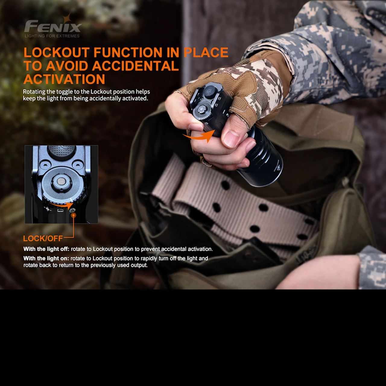 - Tactical and Outdoor Modes: With the torch switched off or on – press and hold the mode button for Instant 3,500 lumen strobe. (Does not operate in Lockout Mode)