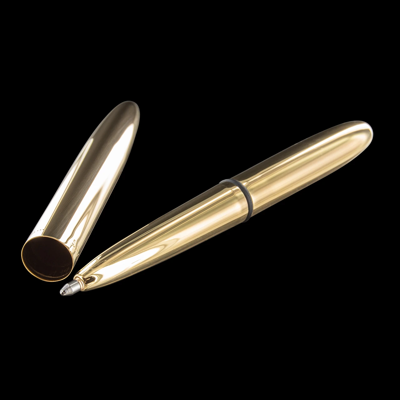 The Bullet pen is timeless, elegant, and extremely durable. This version, the Fisher Polished Raw Brass Bullet Space Pen is elegant in its simplicity. A simple capsule of polished brass, this pen appears to glow in the ambient light. It’s absolutely smooth and lovely to hold.