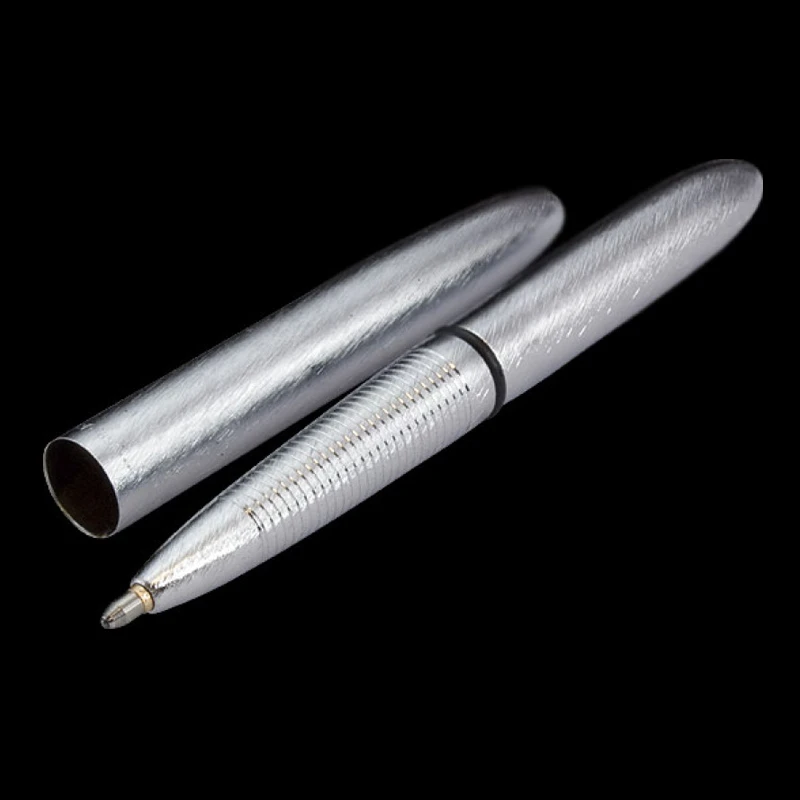 When closed, Bullet Space Pens are the perfect size to carry in your wallet, pocket, purse, car glove box, organizer or toolbox. When open it’s a full sized, evenly balanced writing instrument. The original Bullet Space Pen was conceived in July of 1948, Paul Fisher was soon machining a new pen design shaped from solid aluminum. It became the first Fisher ball point pen, the 400 Bullet Pen, and arguably the most popular pen of the twentieth century. This version is now all brass with a Brushed Chrome finish.
