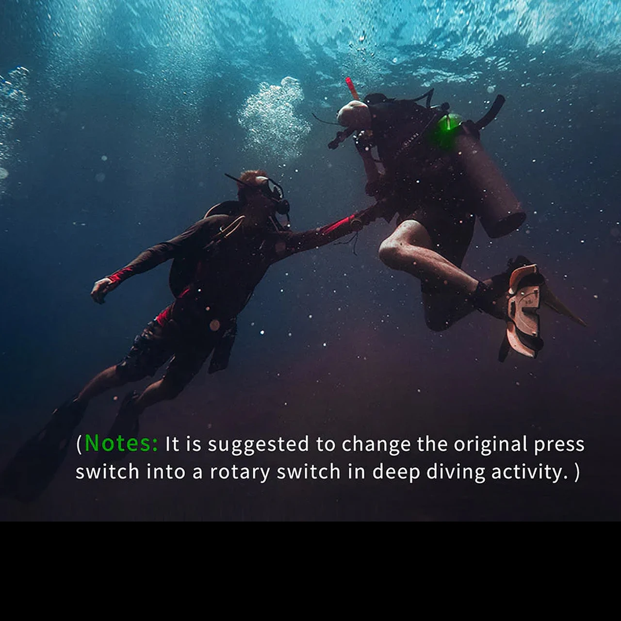 This little glowing tube combines three light sources (red, green, blue) and seven flashing or constant-on modes, it can satisfy different lighting needs as a marker light, such as diving, caving, tactical use. Controlled with a tailcap button.