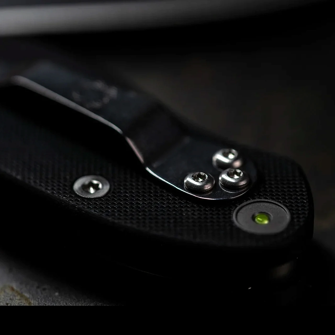 Installation is simple. Loosen the knife scale screws closest to the lanyard hole, and simply slide the plug into place. Once set into the lanyard hole, tighten your scale screws back down, and hit the lights to see the Tritium glow!