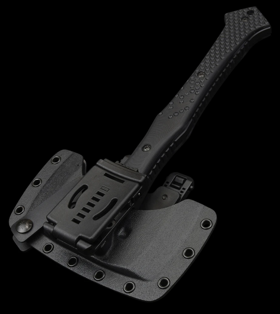 Unique to the CBA is a dual edge cutting head with sharp cutting edges. The CBA’s strong pommel incorporates a large lanyard hole for the attachment of a carabiner or rope lanyard, whilst the G10-clad, 3D-CNC machined handle has been designed for multiple handhold positions to suit single or double-handed use.