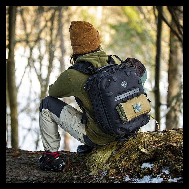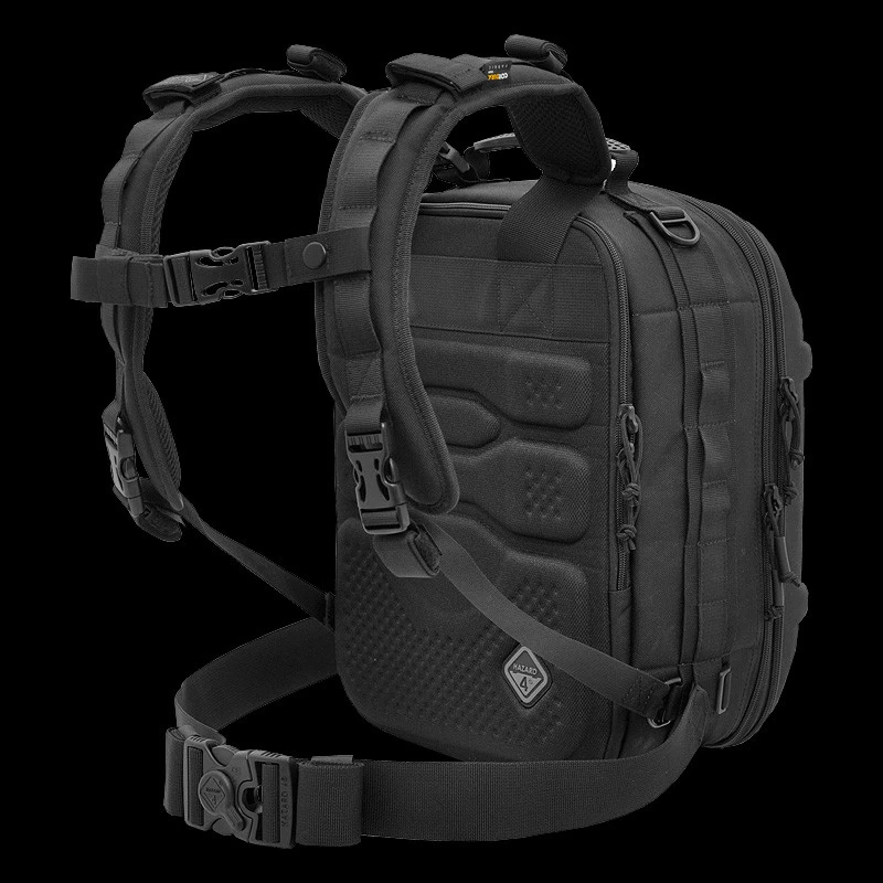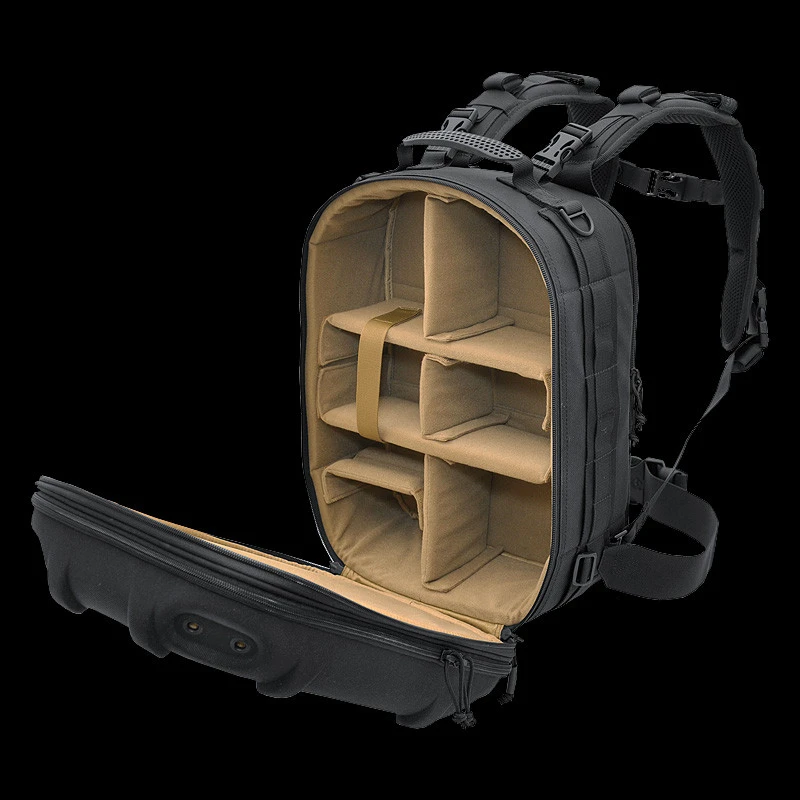 The compartments will fit smaller laptops, tablet, pro camera systems, drones like Mavic Pro, accessories like card-readers, and personal items like snacks, rain shell, or first aid kit that are often not allotted on most packs. The molded back-pad is abrasion resistant while conforming to the spine and ventilating sweat. The top shell has 4 spots for the patented Hardpoint parts allowing optional attachment of loops, lights, bungee systems, molle panels etc.