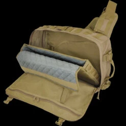 A drop-down fast access gear organizer can also hold an iPad sized tablet like a shelf and the main compartment is lined in hook&loop-like fuzz for attaching dividers, patches or Hazard 4 holsters.