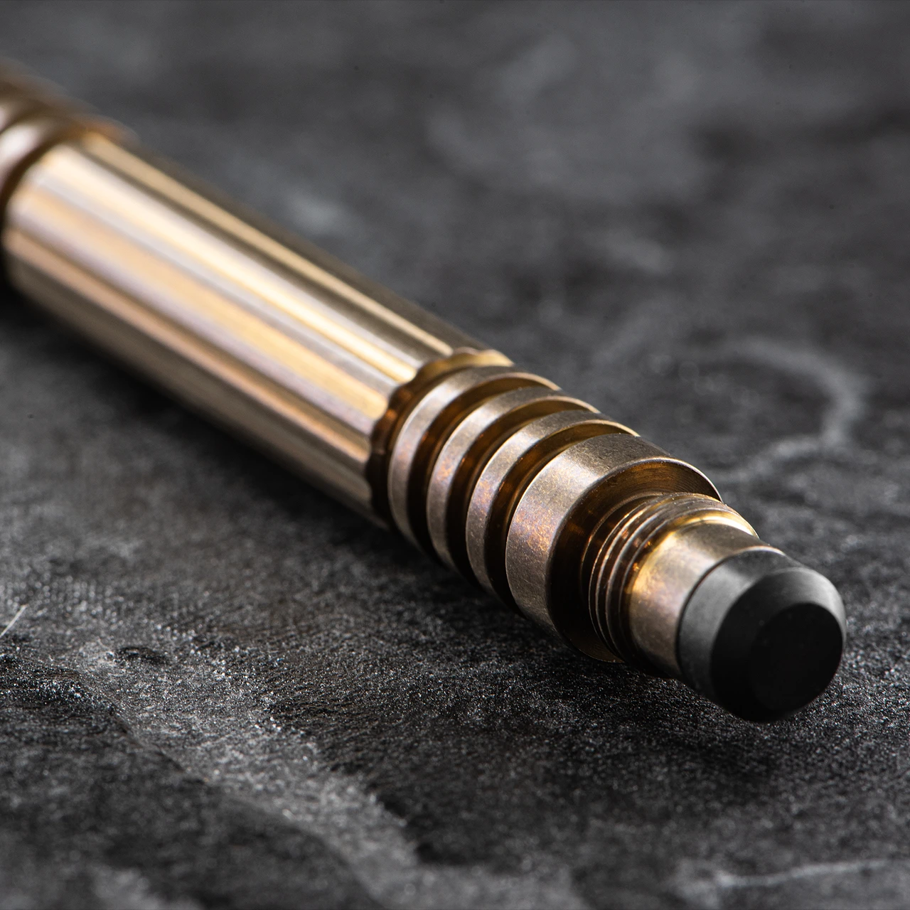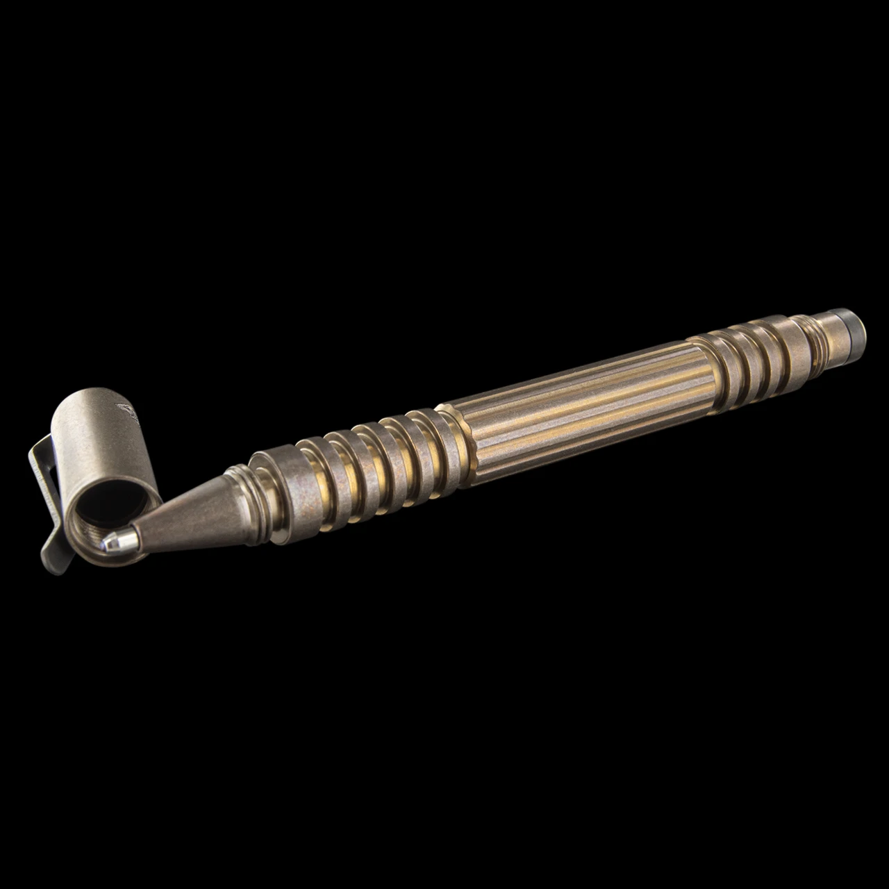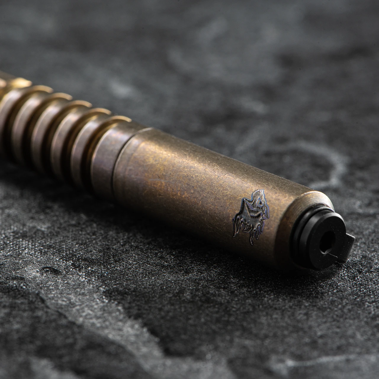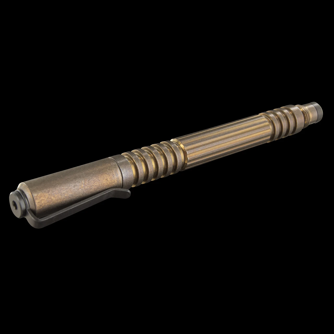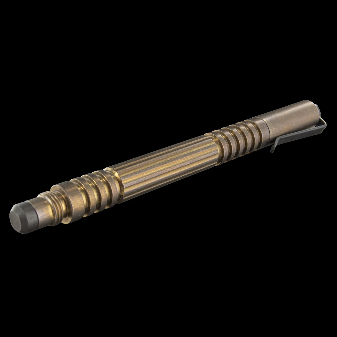 When knife designer Rick Hinderer turns his attention to creating a tactical pen you can be sure that it has the same uncompromising design and attention to detail as his outstanding knives. The Investigator is a compact little EDC pen with an enormous amount of attitude! This version is made from Titanium with bronze anodisation with a black pocket clip.