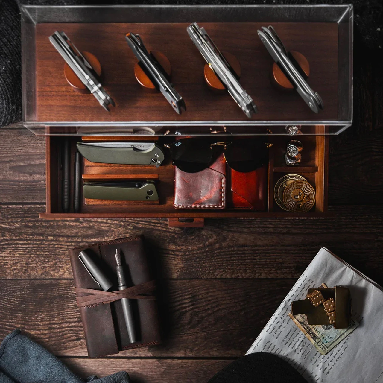 The Holme and Hadfield Knife Deck is designed to showcase your favourite knives, giving them the platform they deserve, while organizing the rest of your collection in the drawer.