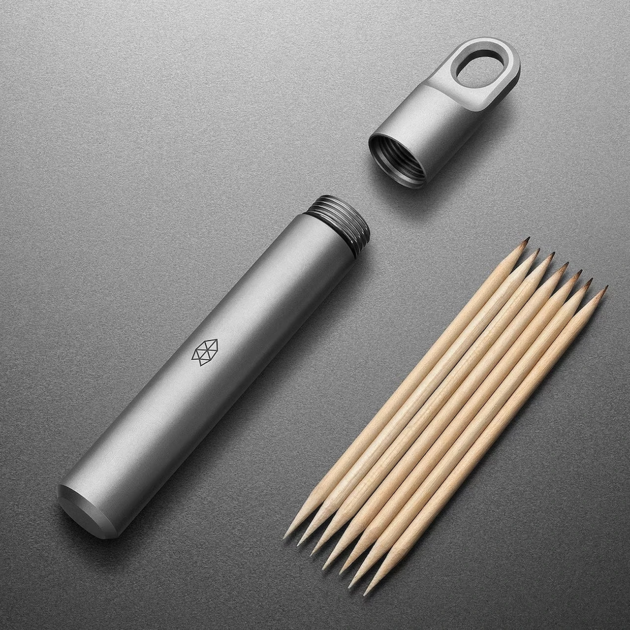 The James Brand Randolph lets you take you smallest valuables (whatever they may be) with you, from the office to the backcountry. The Randolph holds 8 toothpicks but can also carry things like cash or your medications of all kinds. Made of 6AL4V titanium with a water-resistant screw on cap with a lanyard loop, the Randolph is light, strong and will ride easily in your pocket all day.