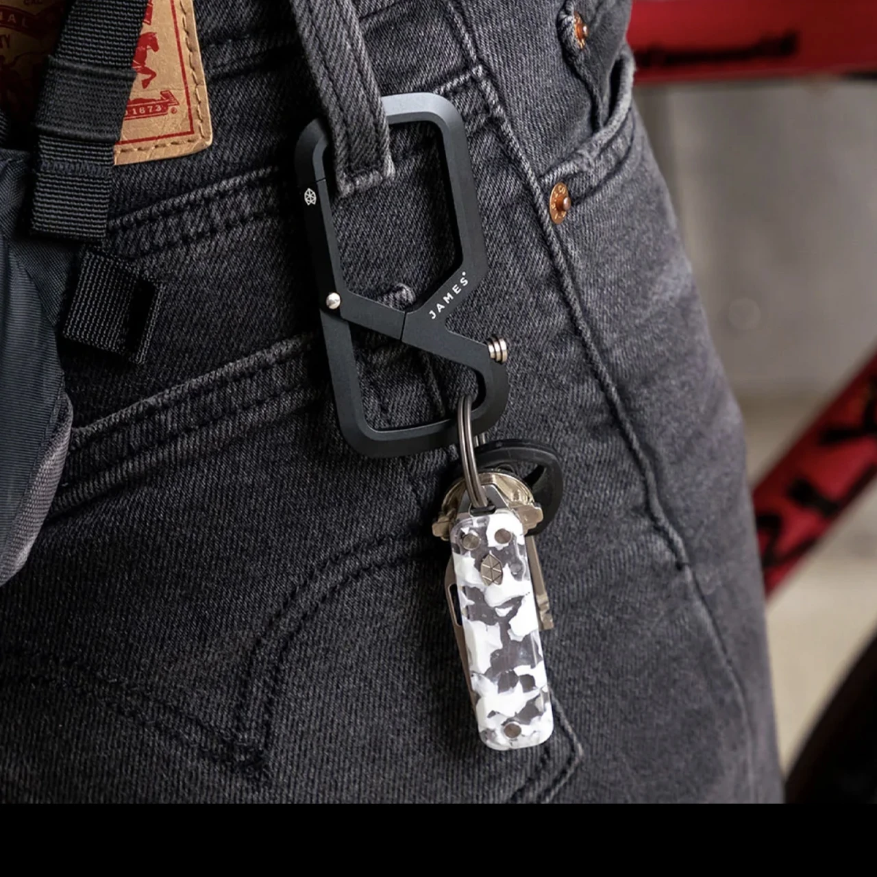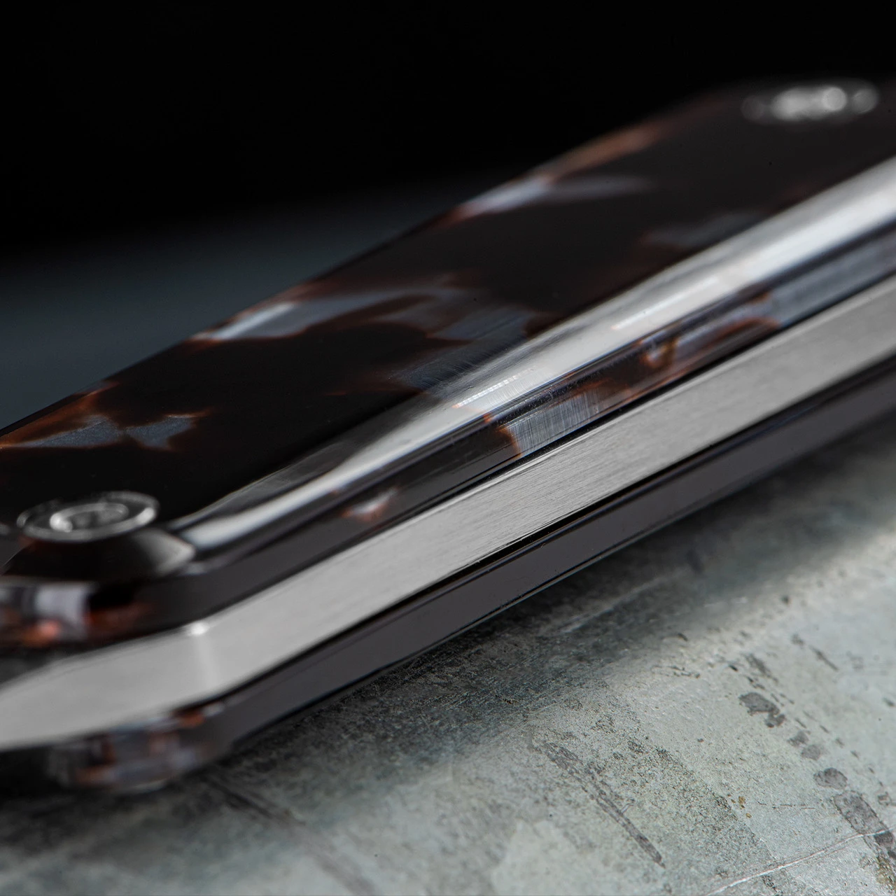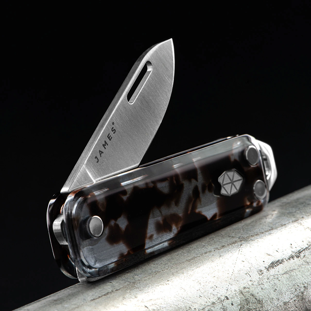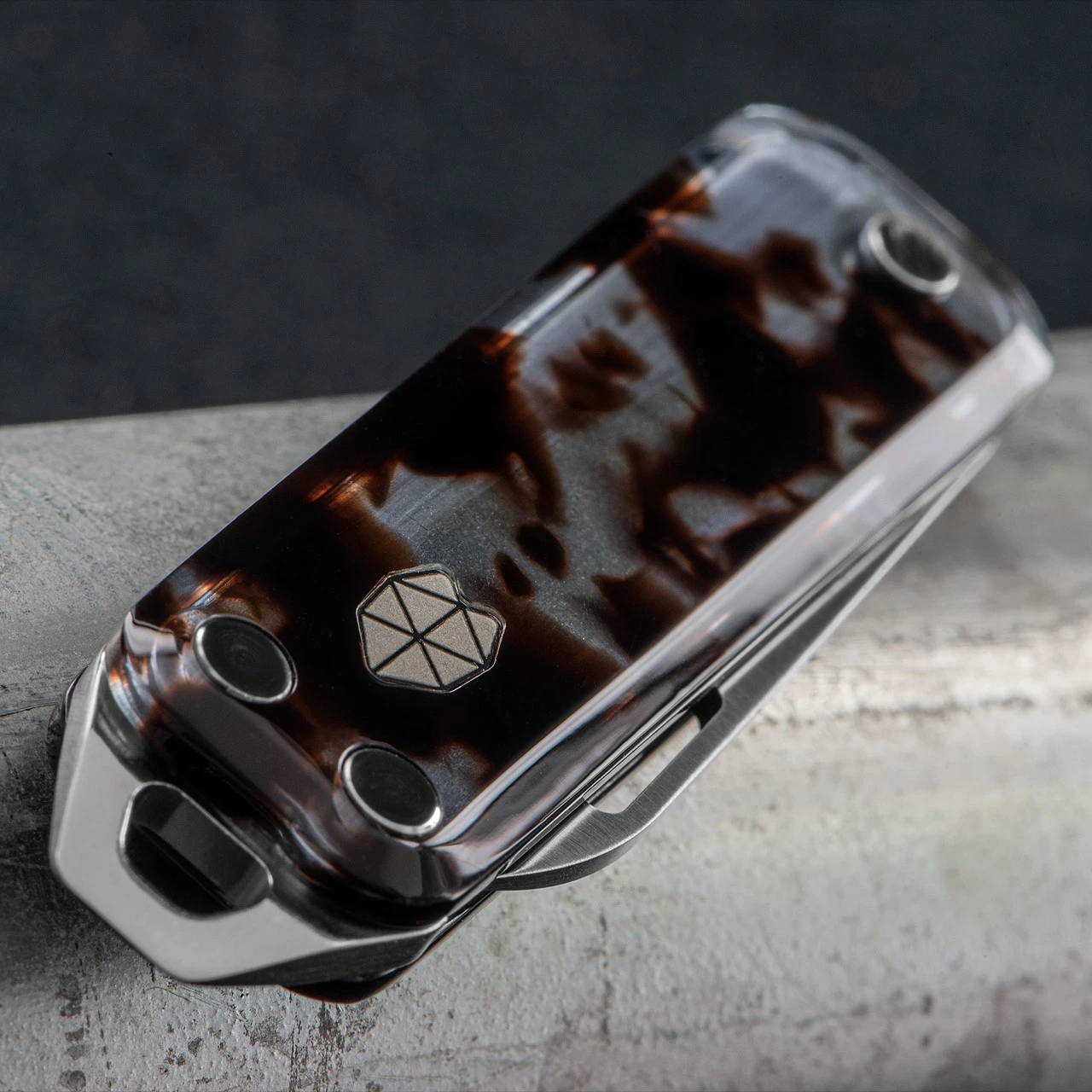 Welcome to the brand new acetate version of the James Brand Elko keychain pocket knife. Acetate traditionally is used in the eyewear industry, where it’s revered for its durability, depth, rich tones and beautiful finish. These acetate scales are cut from a singular sheet and made by hand, using the exact same processes from the high-end eyewear industry. The Elko is finished with a foil logo badge that is “floated” in the acetate, and is ready to go right on your keyring, where you’ll reach for it multiple times a day. No two are the same, and all are amazingly beautiful. It’s a great way to elevate your daily carry.
