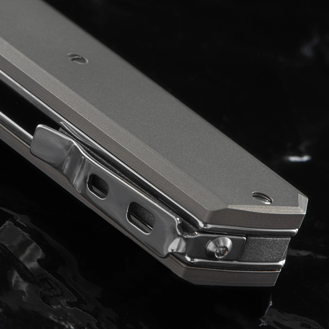 The thick set handle really fills the hand and is made from Titanium, one of the strongest materials known to man. It looks pretty cool too!