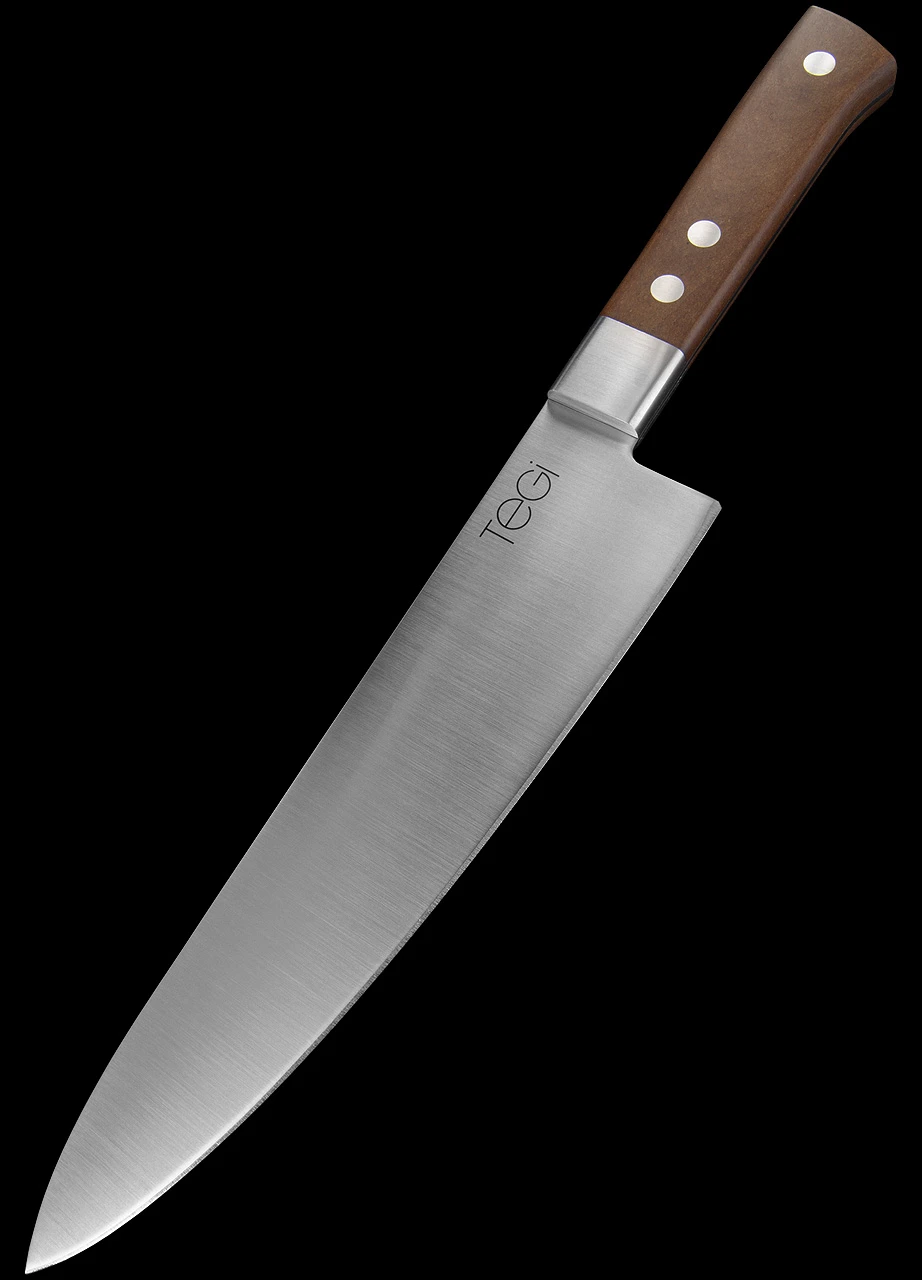 The Italian made Maserin Tegi 19cm is a kitchen knife with a laser-cut blade in a steel with a high content of Carbon for cut and hardness, and with Chromium that makes the steel ‘stainless’, also with Molybdenum which increases protection against oxidation and with Vanadium which increases the duration of the edge. The special tempering process with nitrogen gives the blade a 58 HRC Rockwell hardness.