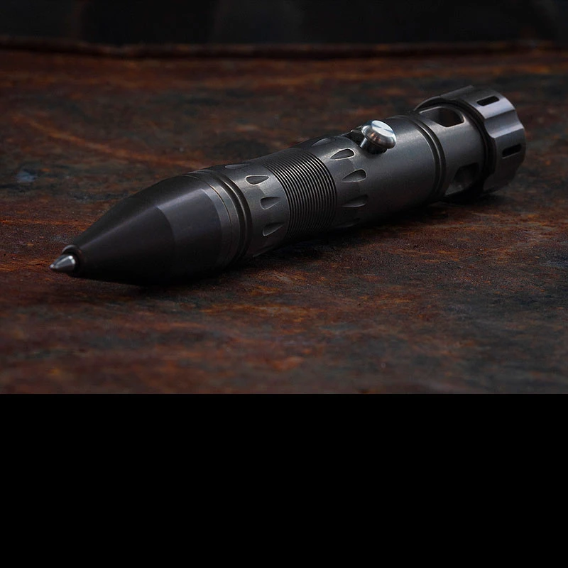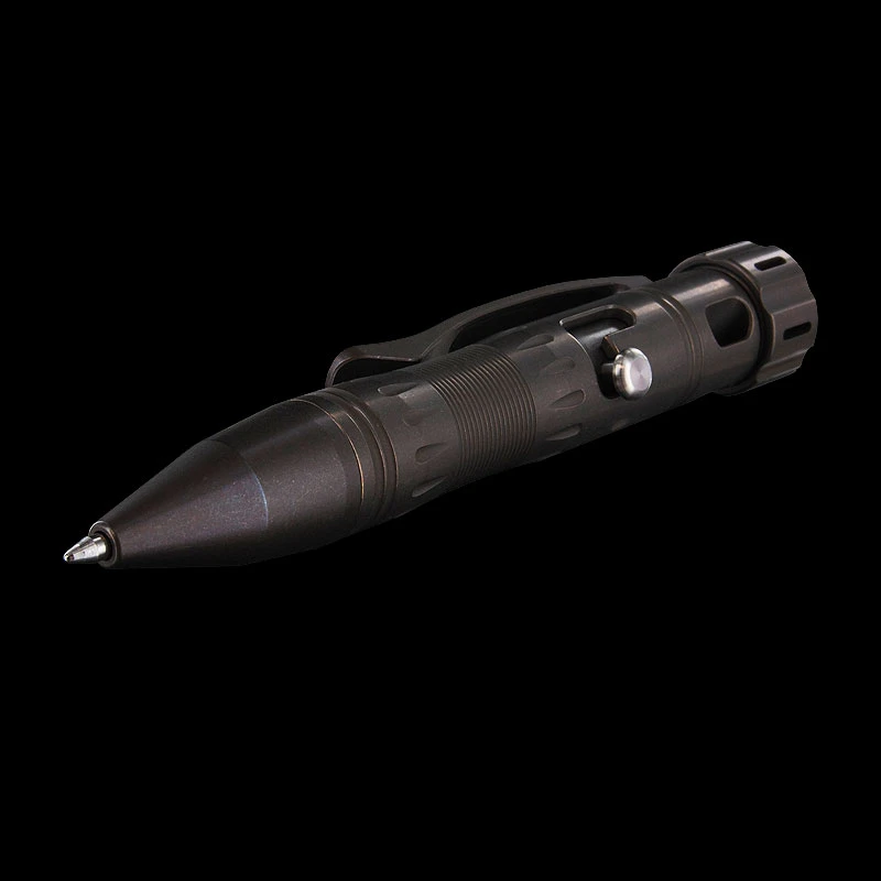 The MecArmy TPX10 is no ordinary pen. In looks and functionality, it takes first prize for innovation and individuality. The body of this version is bronzed titanium and benefits greatly from precision CNC machining. The pen tip is engaged is via a bolt action mechanism on the side of the pen and is returned to the unused position in the same manner.