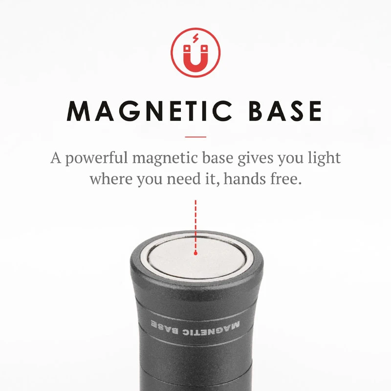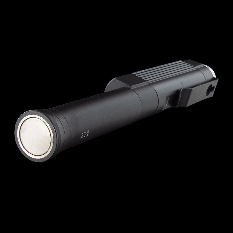 Side light outputs 500 lumens with the COB (Chips On Board) and 200 lumens from the top flashlight. The red COB light is perfect for distress signaling or roadside emergencies. The steel clip and magnetic base provide convenient hands-free lighting options. Press and hold the button and it is dimmable too.