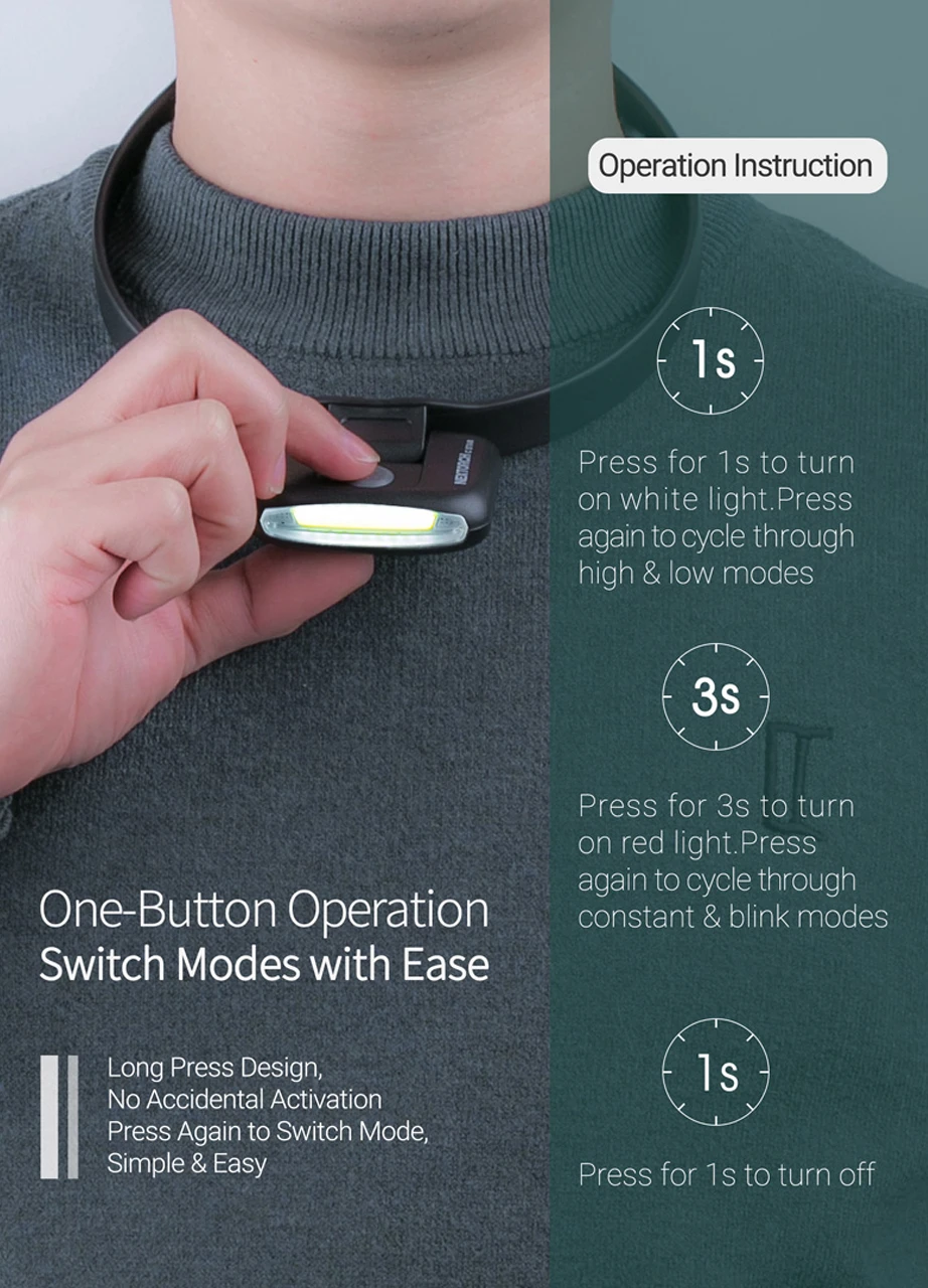 As a neck light, it shines a dazzle-free light below the eyes for reading or any other close up work. You can now move freely without worrying about dazzling others. The C STAR can also work as a pressure-free headlamp with a 180° rotary light head.