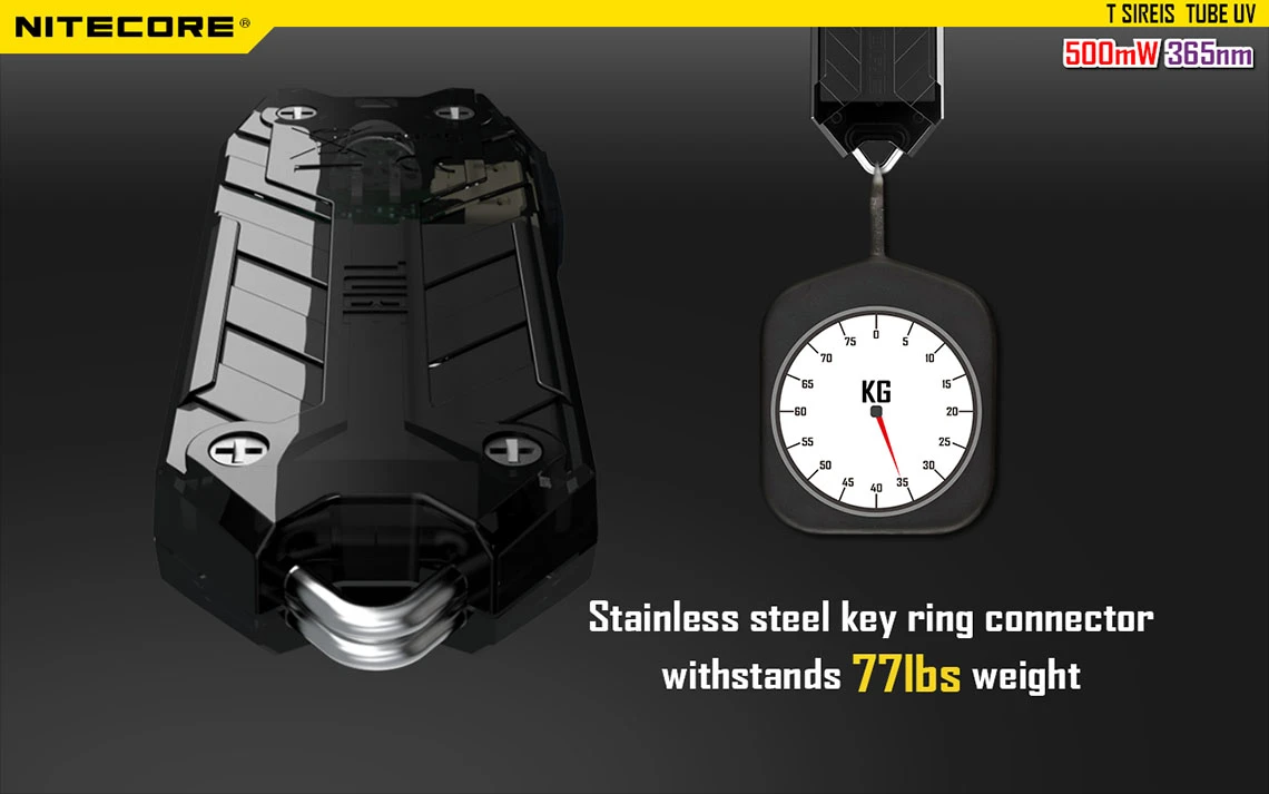 The new UV version of the popular Nitecore Tube features a 365nm wavelength ultraviolet LED. Easy to carry and ideal for detecting fake money and identity cards, this Tube is also good for verification mark reading and fluorescence activation.