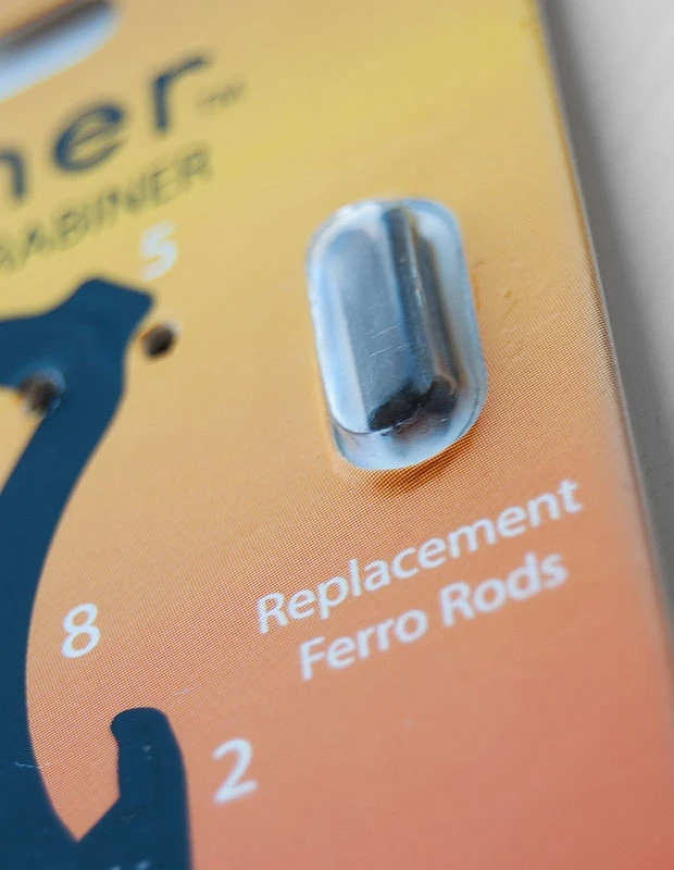 • Replaceable ferro rod, with extra rods included