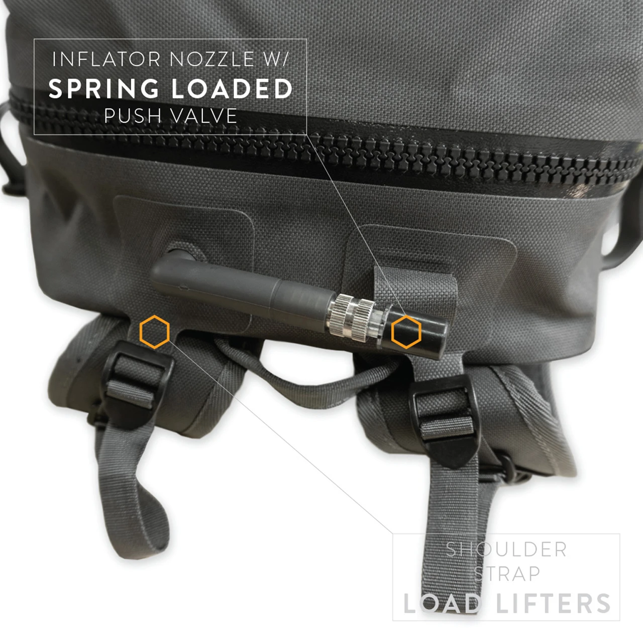 One of the unique design features of the AT Pack 24L is the built in inflator nozzle. The spring-loaded valve makes using it an easy operation to deflate or inflate the pack. The inflator nozzle allows the pack to be inflated for buoyancy and used as a field expedient, temporary floatation device if needed. The AT Pack 24L is amphibious rated, versatile, capable, and designed for all terrain adventures on and off the grid.