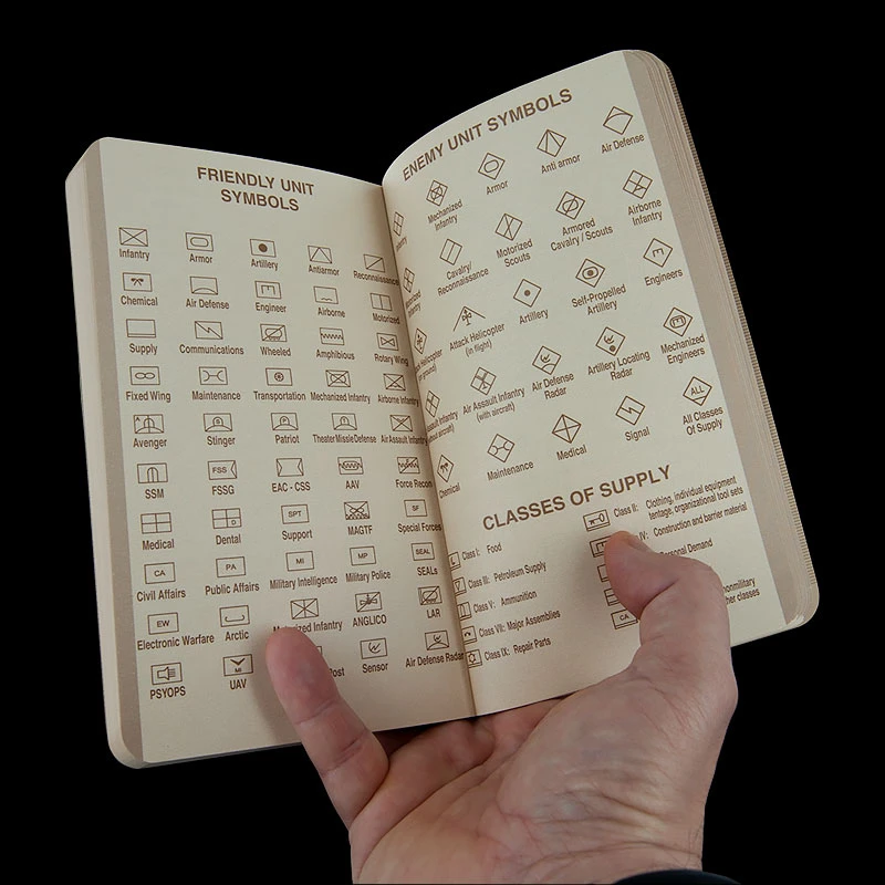 The tough Field-Flex cover on the Rite in the Rain Field Note Book will withstand the rigours of battle while fitting comfortably into your cargo trouser pocket. Pages are printed on 11.8cm x 18.4cm non-glare Rite in the Rain All-Weather Paper. Each sheet is perforated for easy removal. Use the Universal pattern for notes and scaled drawings. The book also contains 16 pages of tactical reference material, including: Sector sketch preparation, unit symbol charts, mission graphics, call for fire procedure and much more.