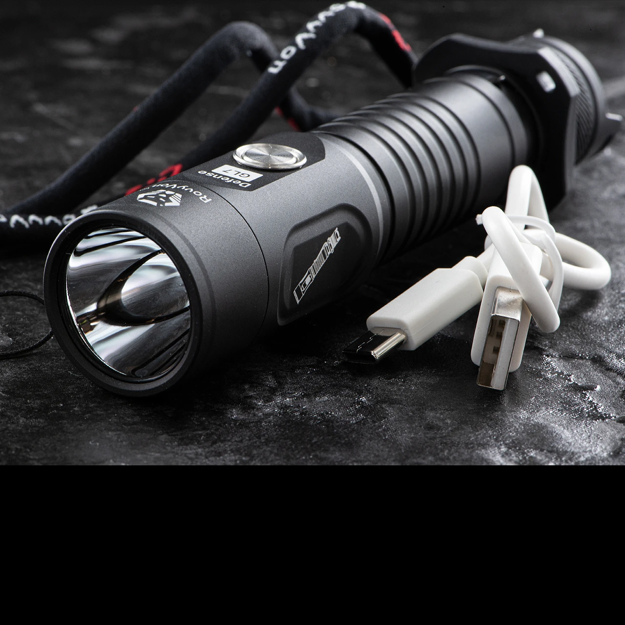 The Rovyvon GL7 utilizes a Luminus SST-40 LED that boosts max 2000 lumens. The included 3400mAh 18650 battery helps to achieve more sustainable run times. On turbo boost mode (2000 lumens) the beam will last for 3 minutes before dropping to 750 lumens for the next 86 minutes constantly on. It’s rechargeable via the built-in USB-C port and fully charged in 2 hours. The 1″ body diameter fits most mounts making the GL7 a gun light.
