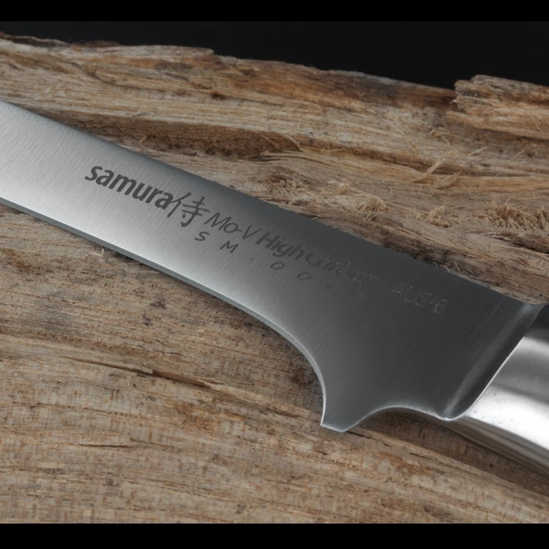The Samura MO-V Boning Knife is a professional-grade piece of equipment With its one-piece blade having a very narrow profile, this knife is specially designed for fish, poultry, veal or lamb and is able to easily separate the loin from bones and skin. With an impressive light weight, this tool can be used for extended periods.