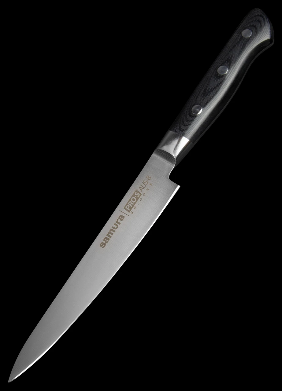 For cooks who value comfort as highly as performance, the reliable PRO-S series features multi-functional knives that smartly fit into any existing kitchen arsenal. A favorite of Samura manufacturers, PRO-S knives are full-tang, single-ply AUS-8 steel, which maintains its sharpness even after years of regular use.