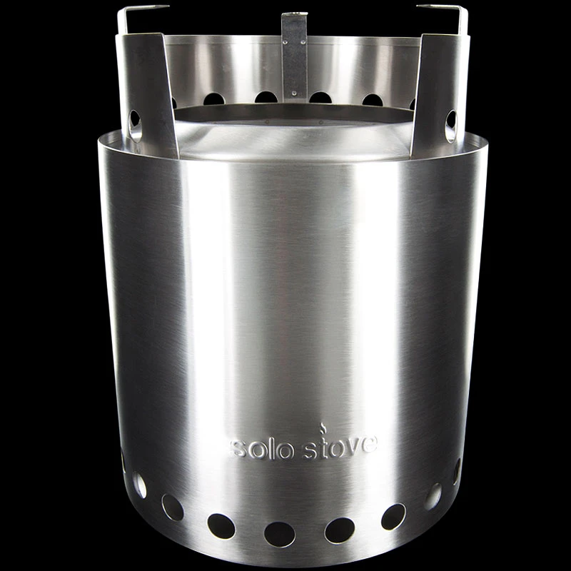 Designed with a double wall, the Solo Stove Campfire is a natural convection inverted downgas gasifer stove. The air intake holes on the bottom of the stove channels air to the bottom of the fire while at the same time, channels warm air up between the walls of the stove. This burst of preheated oxygen feeding back into the firebox through the smaller holes at the top of the stove causes a secondary combustion. This allows the fire to burn more complete which is why there is very little smoke during full burn. A more efficient burn also means you’ll use much less wood compared to an open camp fire. The Solo Stove Campfire doesn’t just burn wood. It actually cooks the smoke out of the wood and then burns the smoke not once, but twice!