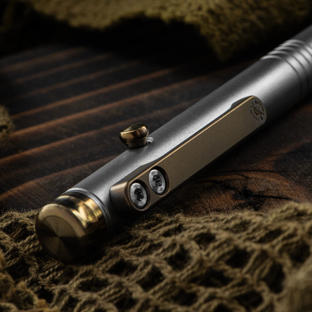 The Spartan Blades “Grafi” Bronze Titanium Pen is far more than a simple writing instrument. This meticulously well-crafted titanium pen is produced in the USA using precision Swiss milling. It is a precision writing tool that fulfils a basic function but with style and beauty. The 5.25 inch pen is light in weight and well balanced yet substantial enough to know you are holding a thing of significant quality that is a pleasure to use.