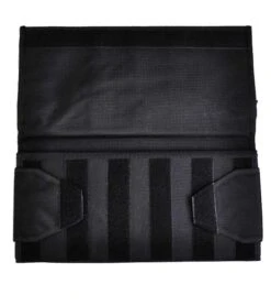 Constructed from heavy-denier polyester Cordura, the Spyderco SpyderPacis available in two sizes Small (18 pockets) and Large (30 pockets). Each pocket is fronted with a clear plastic window for viewing knives tucked inside. It tri-folds over and seals closed by way of a Velcro strip running the width of the pack. The knives remain secure and separated in their pockets and cannot rub or scratch against each other. An adjustable length shoulder strap attaches with two durable steel D-rings letting you hang the pack for display on a wall or sling it over your shoulder to take with you. Spyderco’s name and bug logo are embroidered in gold thread on the closing flap.