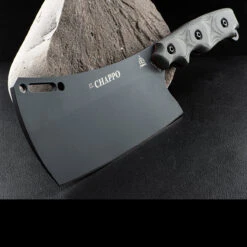 The TOPS High Impact is knife designer, Leo Espinoza’s take on a full-sized hatchet/small axe. It’s huge. At just over 47cm overall length, full-tang, and 0.9cm thick, this thing has some weight behind it. It’s made of 1075 high carbon steel, so it’ll handle impacts well and keep a good edge. The tan canvas Micarta handles are thick, but have comfortable, rounded edges with some extra contouring to improve the grip without making it harsh. The classy double-stitched blade mask is a nod to the traditional options on the market but maintains TOPS’ style.
