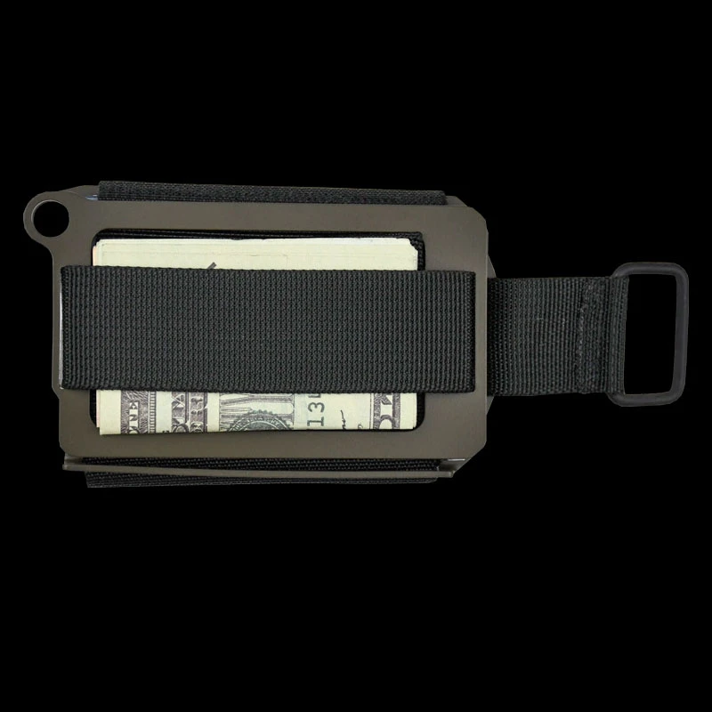 Well, this one took us a little while to work out, here at Heinnie® HQ. This little wallet is made of simple components – all there is to it is are two pieces of stainless steel and a couple of sections of webbing; but it’s ingenious in its construction, and you’ll have great fund demonstrating this to your friends. The wallet is a simple bi-fold, pivoting on the paracord at the base, and held closed with the narrower MIL-SPEC webbing via the eyelet. The wider section of webbing can be adjusted to accommodate the number of bank cards that you need in your life – from a single skinny card, to a chunky 14, to really bulk out this wallet to its full potential. The webbing loop on the rear doubles as a money clip, allowing you to carry your notes securely.