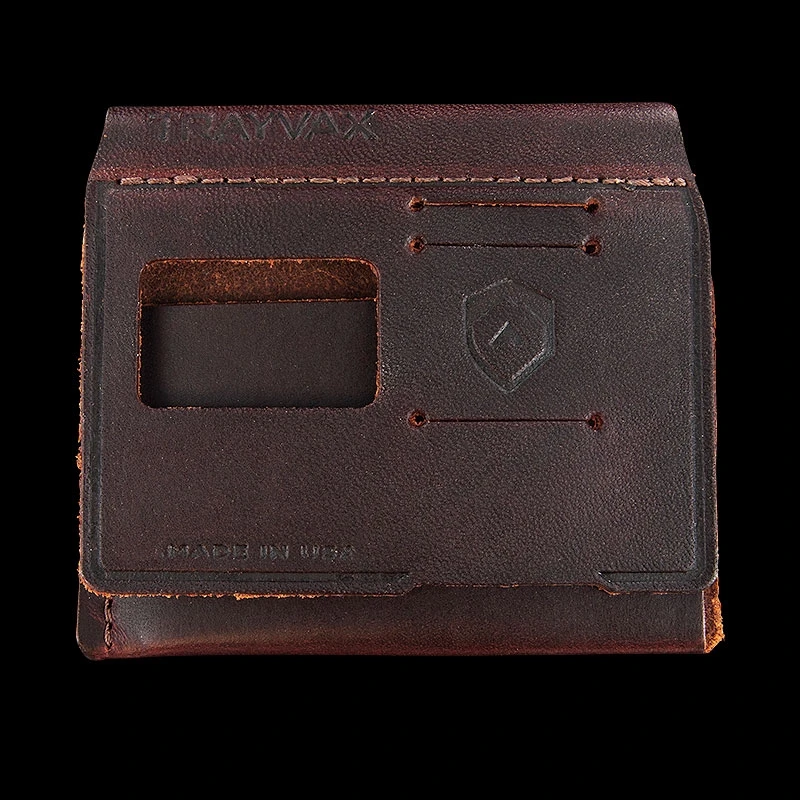 The Trayvax® Summit Notebook Bi-Fold Sleeve easily transforms your Summit wallet into a leather journal. Trayvax® utilize oiled latigo leather to give you a durable leather cover that will develop a flawless patina with use. Turn your metal wallet into a fine leather journal so you can quickly jot down notes and keep your thoughts organized.
