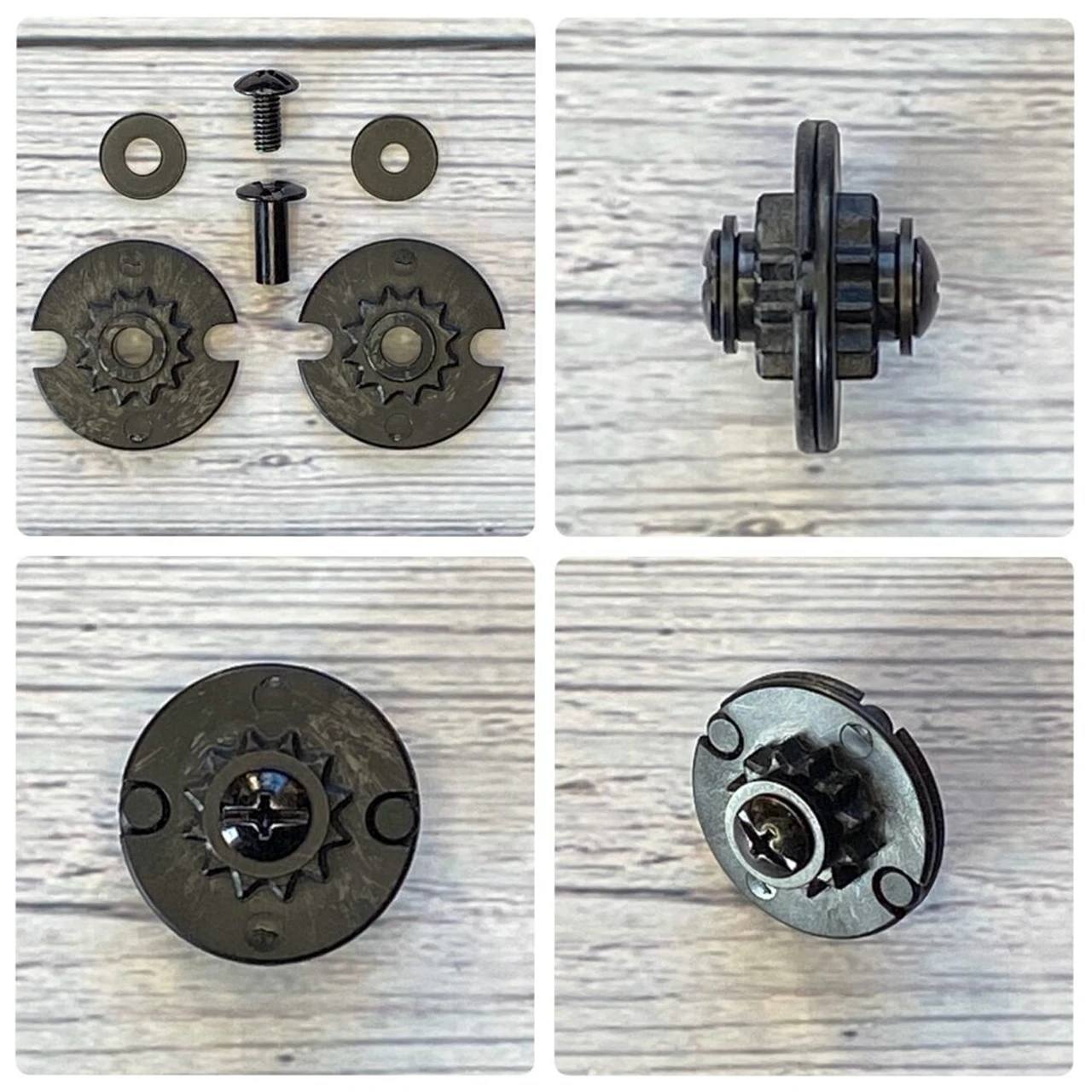 Includes: 2 Pinions with mounting hardware for belts, molle, knife sheaths, holsters, and other applications.