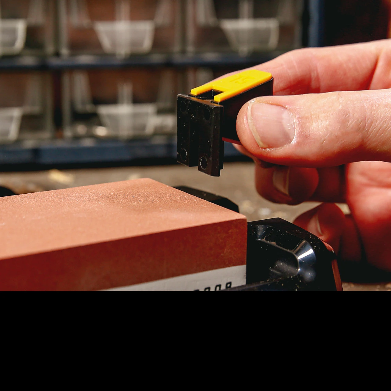 Angle Guides create precision and consistency to maintain an edge, making sharpening faster and easier. Sharpening Guides are interchangeable from 15° or 17° and optional to use.